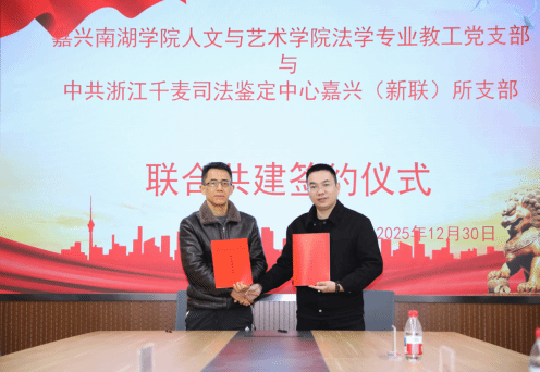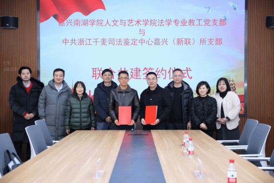 12月30日上午,我院法学专业教工党支部与浙江千麦司法鉴定中心嘉兴(新联)所党支部举行联合共建签约仪式。学院副院长赵伯祥、法学教工党支部书记郭万明,新联司法鉴定中心主任沈雪洪、支部书记杨蕾参加了签约仪式。