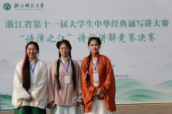 10月28-29日,由浙江省语委、浙江省大学生科技竞赛委员会主办,浙江省语言文字工作者协会指导,浙江师范大学承办的浙江省第十一届大学生中华经典诵写讲大赛“诗泽之江” 诗词讲解竞赛决赛在浙江师范大学顺利举办。我校共有三位选手荣获二等奖、两位选手荣获三等奖。