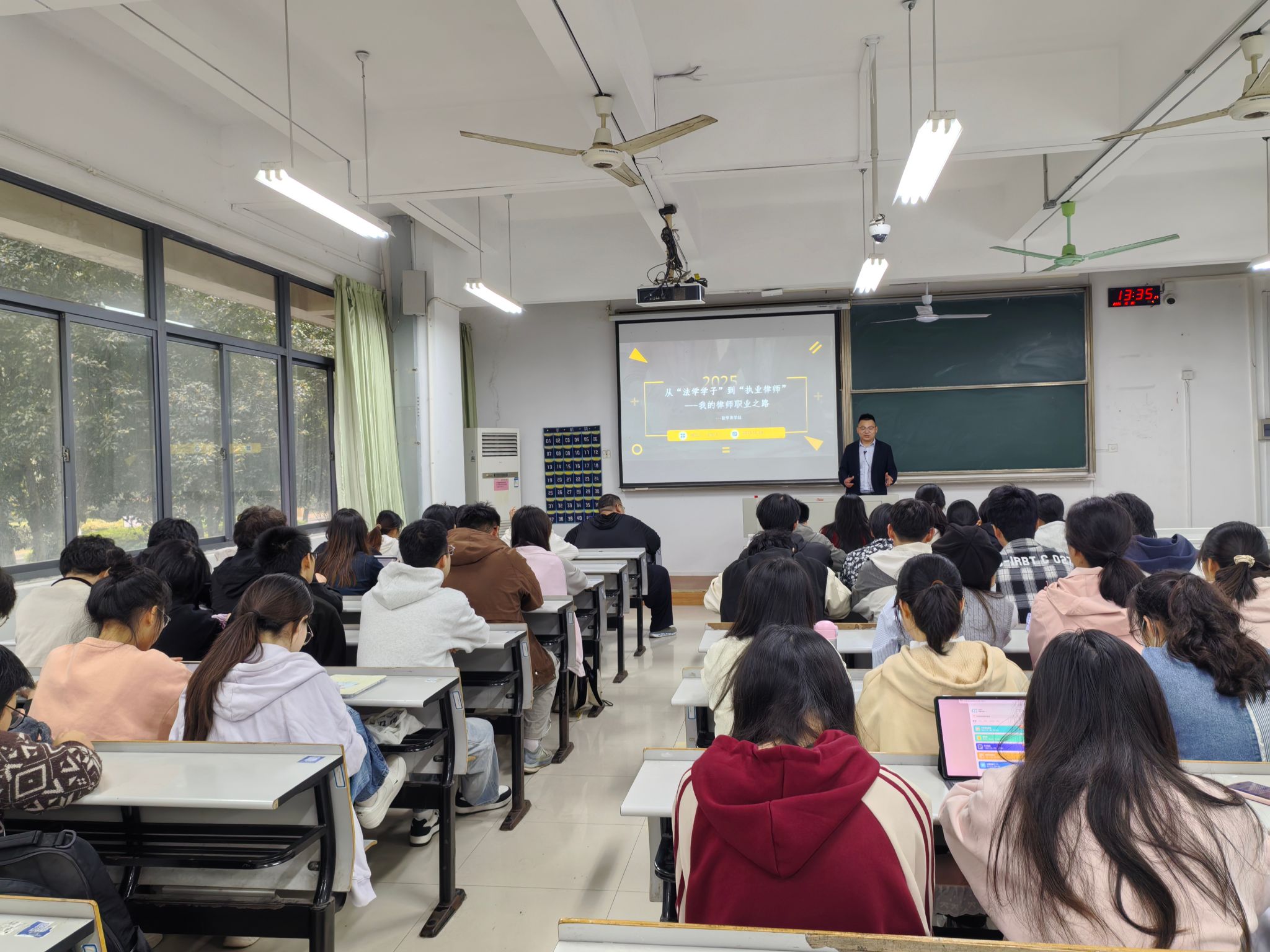 宋军飞带领同学们撕开了律师职业的“精英滤镜”,揭示其真实面貌。他谈到,律师工作远非影视剧中那般光鲜,大量时间投入在案件材料整理、法律文书撰写等琐碎但至关重要的日常中。与当事人的沟通需要极大的耐心和专业引导能力,加班和处理突发情况更是常态。他提醒同学们,提前了解真实行业生态,培养抗压和解决问题能力至关重要。