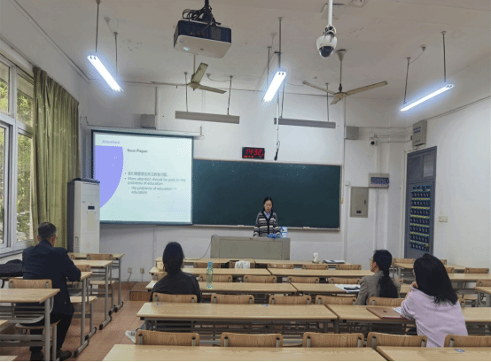 本次磨课活动涵盖语言技能、文化素养、翻译实践等多个维度。Thomas老师的《英语口语2》课程立足跨文化交际视角,精心设计"节日习俗单元教学,引导学生在圣诞节和中国春节进行对比,通过中西文化对比中增强文化自信;《英语听说2》中的“外国文化”的单元教学,通过国外文化相关的听力材料,促进学生的听说能力。李柽杨老师深耕文化研究领域,他的《文学理论基础》课程从"文化研究"理论到《西方文明史》课程中"20世纪人与社会"的历史视野,为学生搭建人文素养提升的阶梯;祁佳艳老师聚焦语言学前沿,《语言学导论》课程两次打磨"语用学"章节,将抽象理论转化为生动课堂。王怡安老师承担翻译教学重任,《翻译理论与实践》课程中的"常用英汉翻译技巧",从词法转换到句式重构,层层递进培养学生双语转换能力。徐晓菲老师则展示了《教育心理学》、《综合英语2》和《英语写作2》:既探究"学习动机"激发策略,又关注"全球变暖"议题,更结合学生发展需求"简历制作与求职信写作",实现知识传授与能力培养的有机统一。