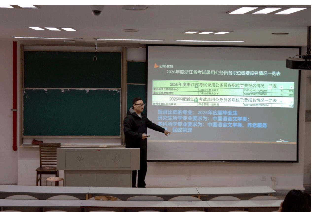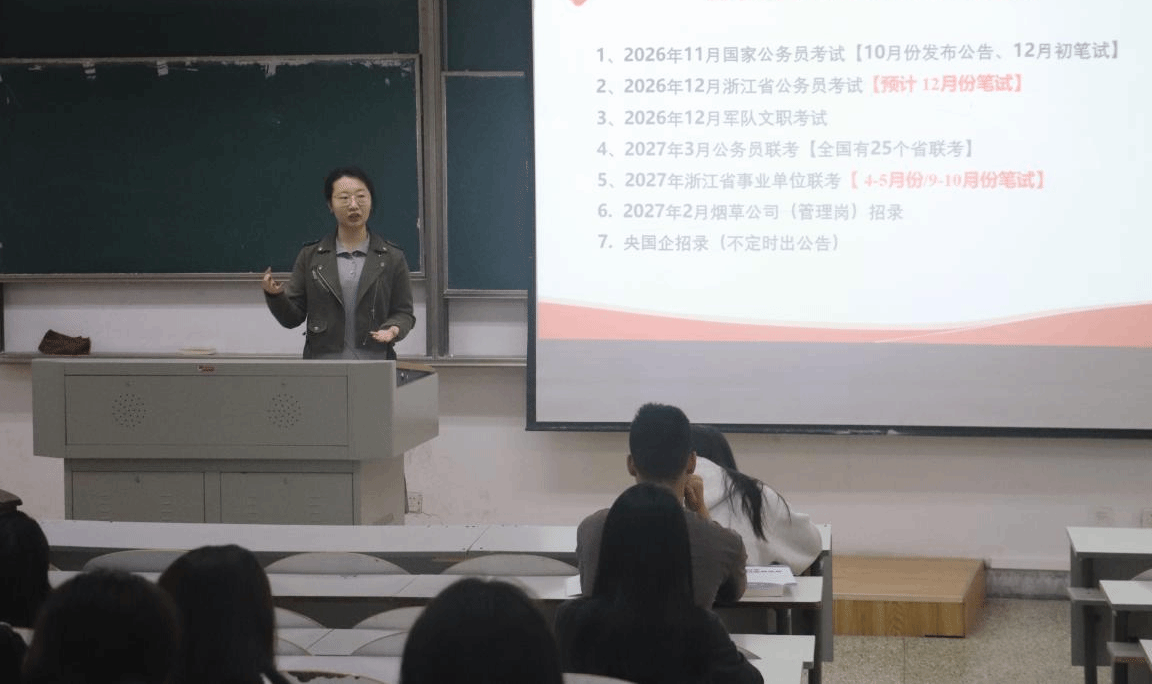 张啸邦老师从体制内优势、应届生身份价值、岗位选择策略及备考方法等方面进行了系统讲解,帮助同学们理性认识体制内外差异,充分利用自身条件科学规划报考方向。