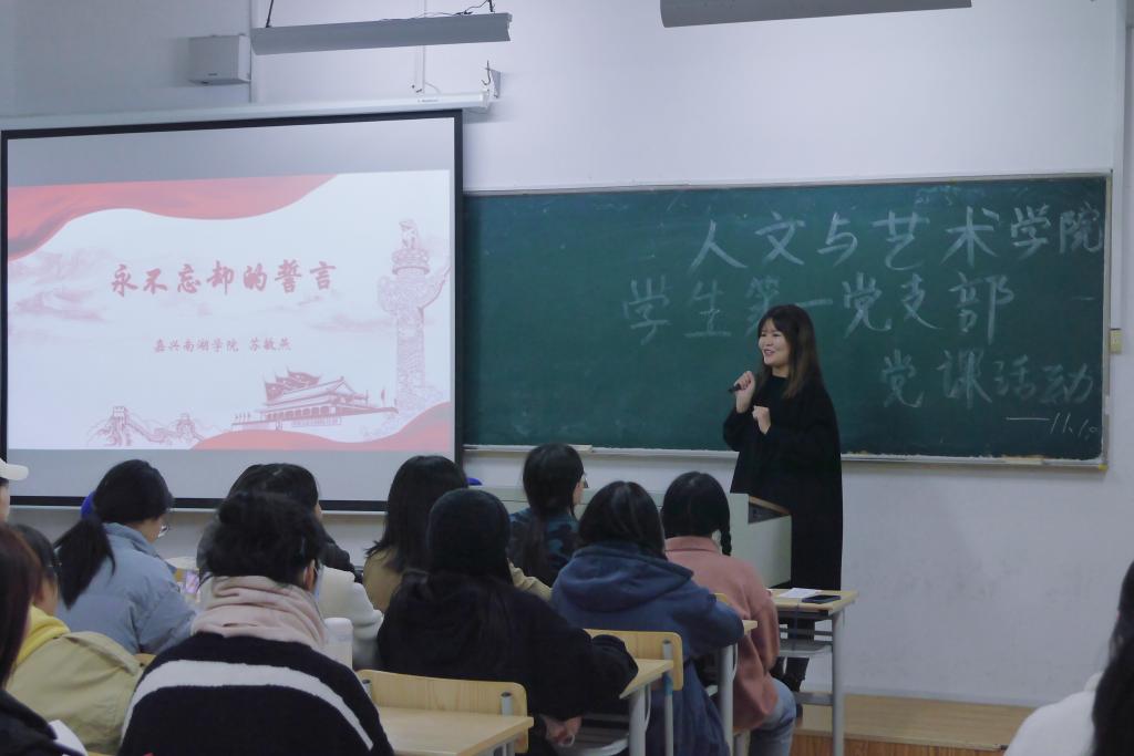 为提高我院学生党员的觉悟修养,11月10日晚上18:30,伟德国际VICTOR1946思政教师苏敏燕老师为本院学生支部上了一节主题为“永不忘却的誓言”的党课。