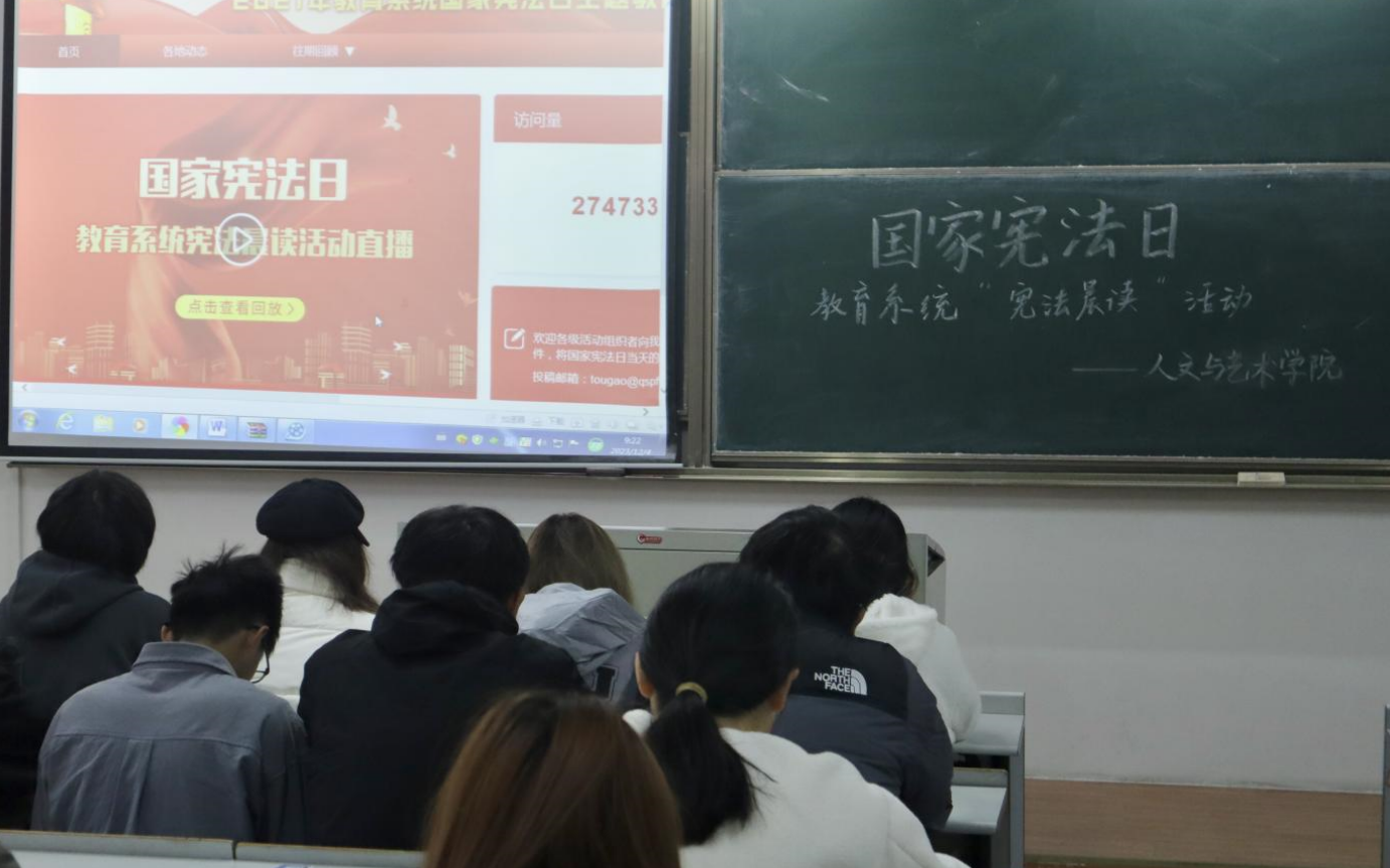 12月4日,学院各班级团支部通过普法网,积极参与教育系统“宪法晨读”活动,通过观看升旗仪式、诵读宪法内容、齐唱法治歌曲,让法治文化踏着清晨、结伴青春,如阳光般温暖、照耀在同学们的心房。