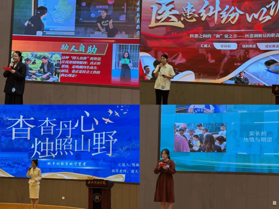 在决赛舞台上,我院四位同学沉着自信,思路清晰。他们结合自身专业特长、兴趣志向与社会需求,畅谈了各自对未来职业发展的深入思考与系统规划。最终,英语221班王敬华同学凭借极具前瞻性与可行性的规划方案和富有感染力的陈述,荣获大赛一等奖。法学231班甘前前同学和英语222班陈楠同学以其扎实的调研和独特的视角双双获得二等奖。汉语言232班叶柳含同学则以其务实的规划和稳健的台风获得三等奖。