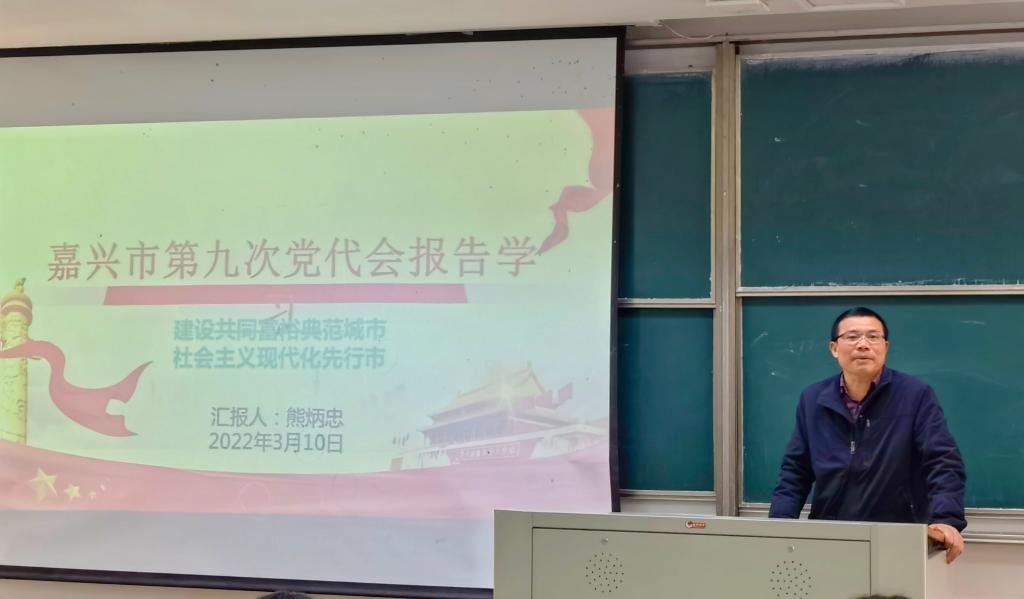 会上,熊炳忠传达了中国共产党嘉兴市第九次党代会的会议精神。当前嘉兴站在新的历史起点上发展走向新的发展时代坐标,希望广大教师能聚焦学校的“三个大学”建设和学院的学科特点、发展定位与自己的研究方向,特别要着重关注未来五年嘉兴在文化领域方面的发展,坚持文化铸魂,积极促进“两个文化”交相辉映,融合发展,奋力打造新时代文化文明高地,延续赓续红色文化基因,彰显传统文化底蕴,塑造城市文化品牌,涵养城市文明风尚。在疫情防控工作上,目前嘉兴周边城市疫情防控形势严峻复杂,牢固树立防疫“第一责任人”意识,切实提高思想认识,切实做好个人防护,做到减少流动和聚集,自觉规范佩戴口罩,教职工“非必要不离嘉”,如确有特殊原因和需要,教职工需要离嘉,需要提前了解目的地的疫情情况,积极配合学校做好疫情防控工作。