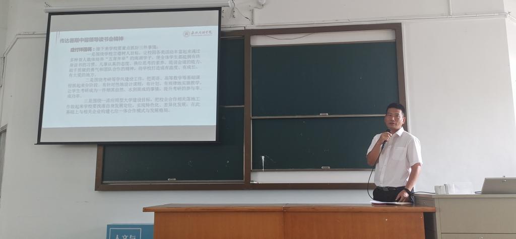 会上,赵伯祥介绍了学院暑期相关工作开展的情况,并向全体教职工介绍了本学期学院新进的7名教师,重点强调各专业要高度重视国务院教育督导委员会办公对本科毕业论文(设计)抽检工作,要求尽快做细做实相关工作。