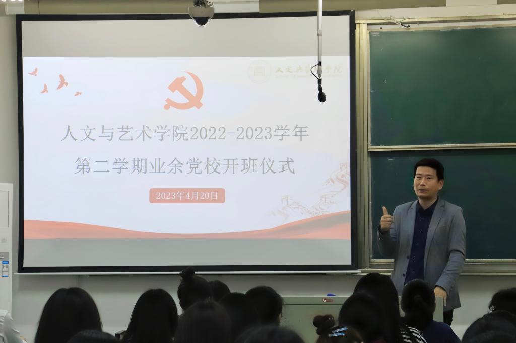 2023年4月20日晚,伟德国际(victor1946·源于英国)官方网站-Officials Website 版权所有2022-2023学年第二学期业余党校开班仪式在教二A328隆重举行。我院党委副书记杨燕群老师、学工办主任徐婧超老师、团委书记陈轶甄老师、学生第二、第三党支部书记张雨逸老师、张鹤竞老师以及72名业余党校培训学员出席,仪式由本次业余党校班主任赵卓均老师主持。