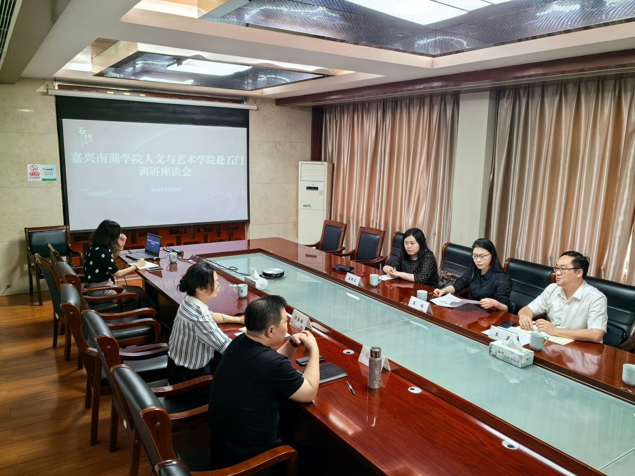 6月14日下午,伟德国际VICTOR1946党委书记王晨、社会合作与国际交流处副处长吕伟,带领新文科综合改革基地研究人员一行4人,前往嘉兴市桐乡石门镇考察交流。石门镇党委书记沈其芳、副书记顾春梅等热情接待了我校一行。