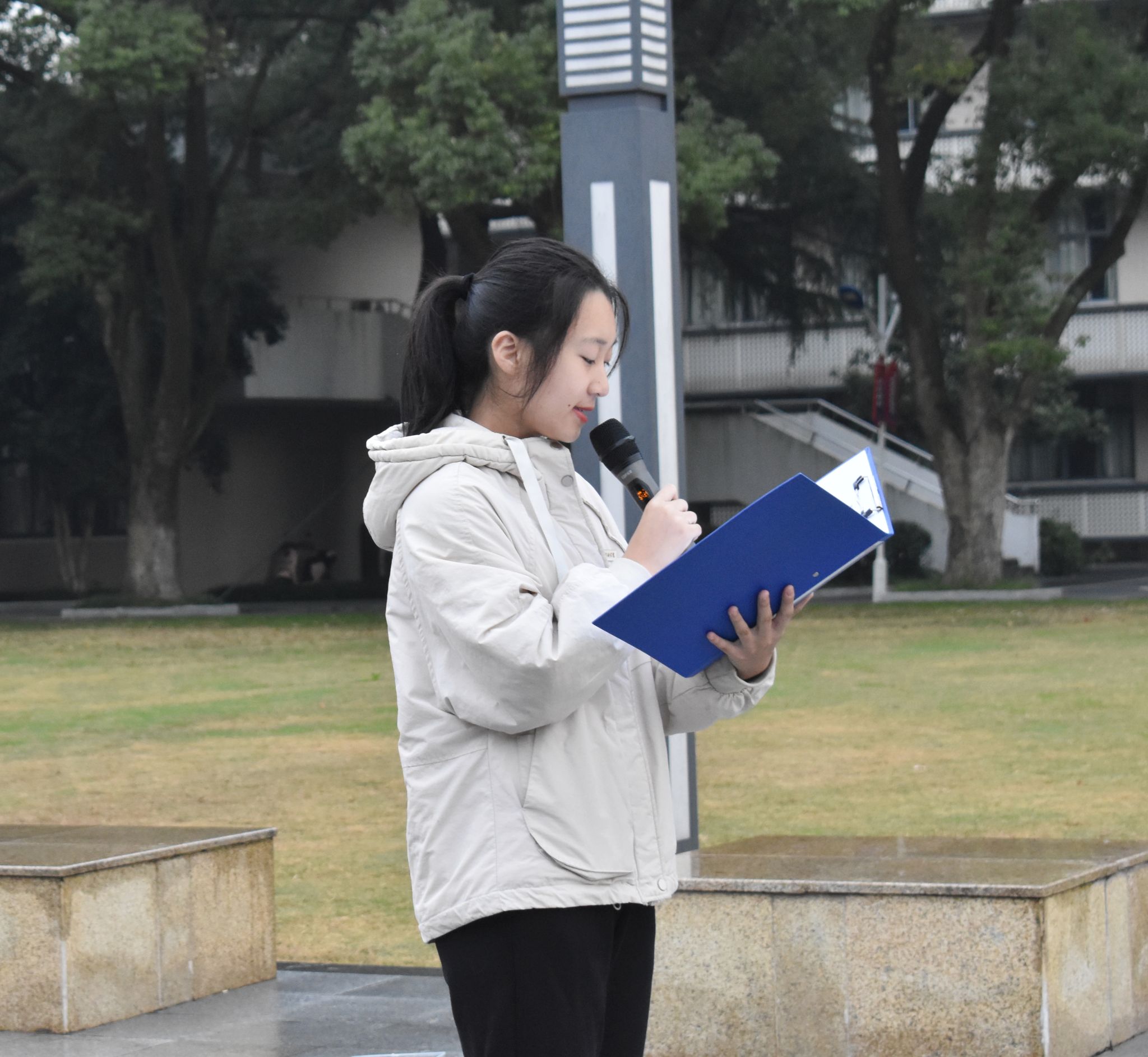 仪式上,学生代表汉语言241班孙艺雯进行国旗下讲话,她分享了自己在完成“南湖证书”校内外“六个一”活动中的收获和感想,并表示作为南湖人,面对大千世界,需初心如磬,矢志不渝,携手并进,理好行囊,共同书写青春篇章。