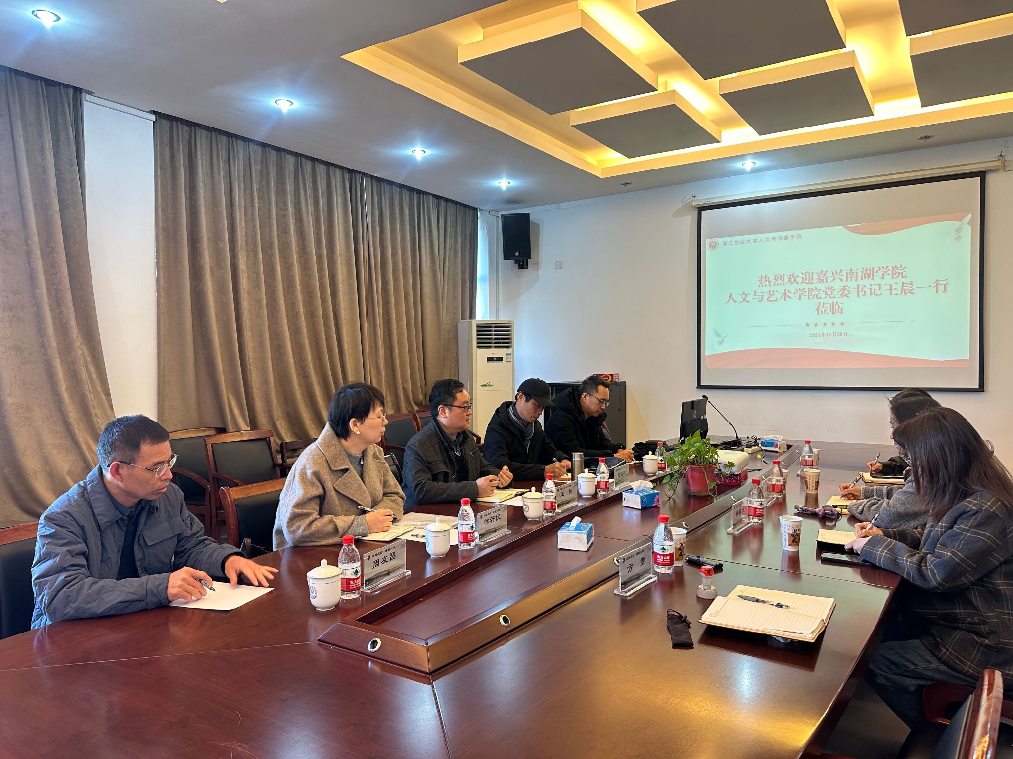 11月29日,学院党委书记王晨、学院副院长赵伯祥一行5人赴浙江财经大学人文与传播学院调研党建和教学科研工作。浙江财经大学人文与传播学院党委书记罗金艳、学院副院长林香娥热情接待了我院一行。