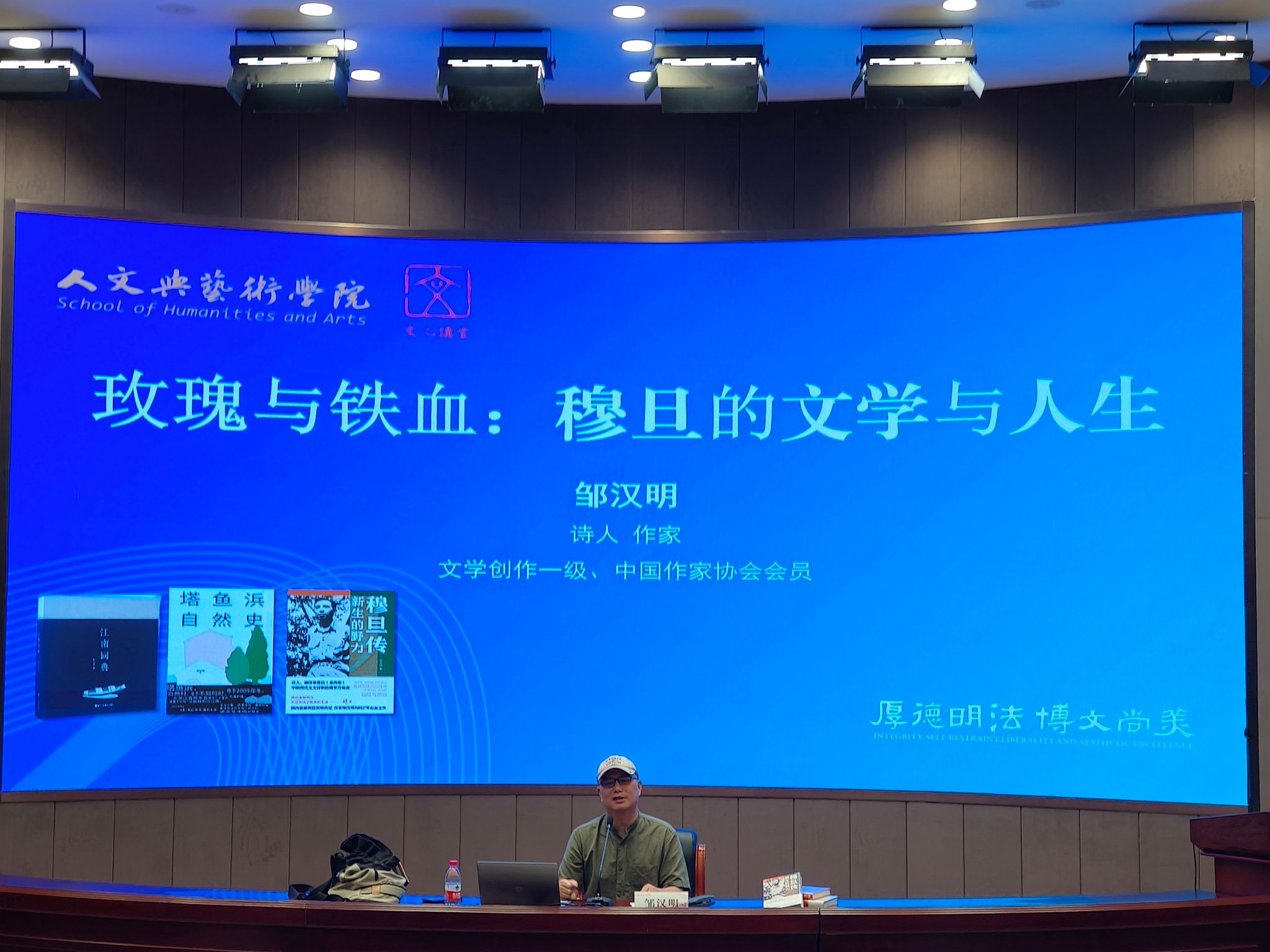 讲座上,邹老师从穆旦的玫瑰人生出发,将穆旦早年的情感经历与爱情纠葛呈现了出来;随后介绍的的铁血人生,将穆旦的形象补充的更加完整与生动。邹老师将铁血与玫瑰相组合,让同学们更加深入了解穆旦,更让同学们理解到人生理经历对文学的影响深远。讲堂最后,邹老师总结了他对穆旦的见解和对穆旦的惋惜,希望在座的同学们珍惜大学校园的美好,并针对同学提出的问题做出了悉心指导。