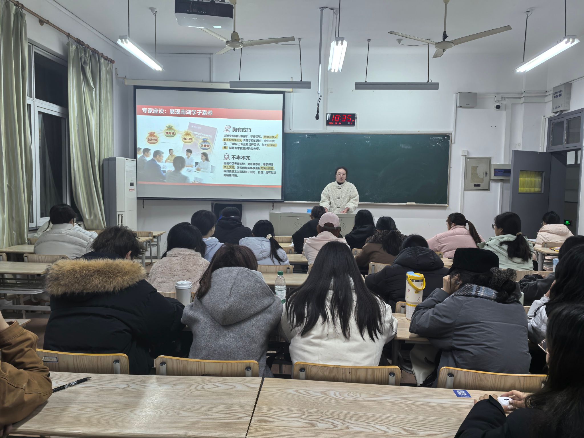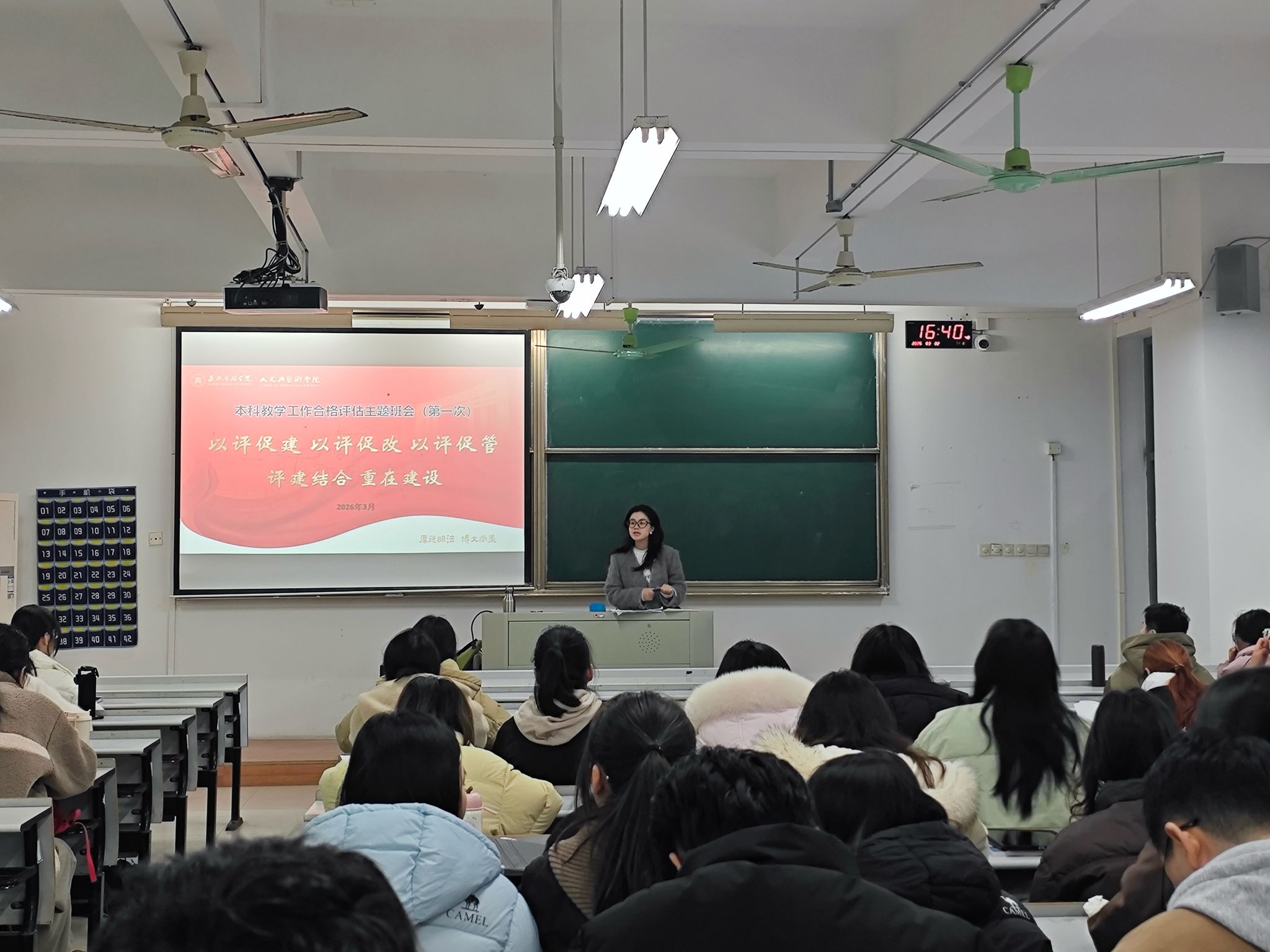 本次班会覆盖全体学生,各班班主任主持班会,各专业辅导员围绕本科教学工作合格评估的背景意义、核心指标维度及基本知识点进行了专题讲解,系统阐述了评估对规范教学管理、提升培养质量、促进学院发展的重要作用,并结合学生成长实际,深入解读了评估对促进学风建设、强化专业技能、引导自我发展的长远意义。